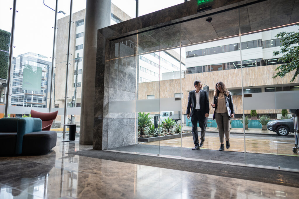 Je kunt hier schoonloopmatten gebruiken, maar dan moet je ze wel effectief inzetten en regelmatig reinigen of vervangen. Bij de entree moet de vloer vaker worden gedweild of machinaal worden gereinigd. Dit is zeker het geval bij nat weer. Glazen deuren en balies moet je zeker niet overslaan: hier vallen vingerafdrukken extra op door de lichtinval.